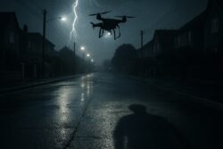 誰かが話していた、妙な話を思い出しました。AIを搭載したドローンが、避雷針として試験運用されたことがあるそうです。ある住宅街では、夜ごと小さな闇を纏った影が、空を滑るように飛んでいたといいます。「稲光の前に、あれが来る」そんな囁きが、不安げな声で広がっていたそうです。そのドローンが最後に目撃されたのは、稲妻が地上に落ちる直前のこと。ある夜は、いつもより低く、遅く、そして……閃光と共に地上へ落ちたのだとか。翌朝、地面にはひび割れたアスファルトと、機体の破片が散らばっていたそうです。けれど最も異様だったのは、その傍に残された“陰”――人の形をした、濡れた地面の黒い影だったといいます。誰のものかは確認できず、次の雷雨でも消えることはなかったとか。静かな住宅街で、今日もその“人影”は、時折アスファルトに浮かび上がるそうです……そんな話を聞きました。この怪談は、以下のニュース記事をきっかけに生成されたフィクションです。ドローンで「空飛ぶ避雷針」実験に成功、街の被害ゼロ目指す