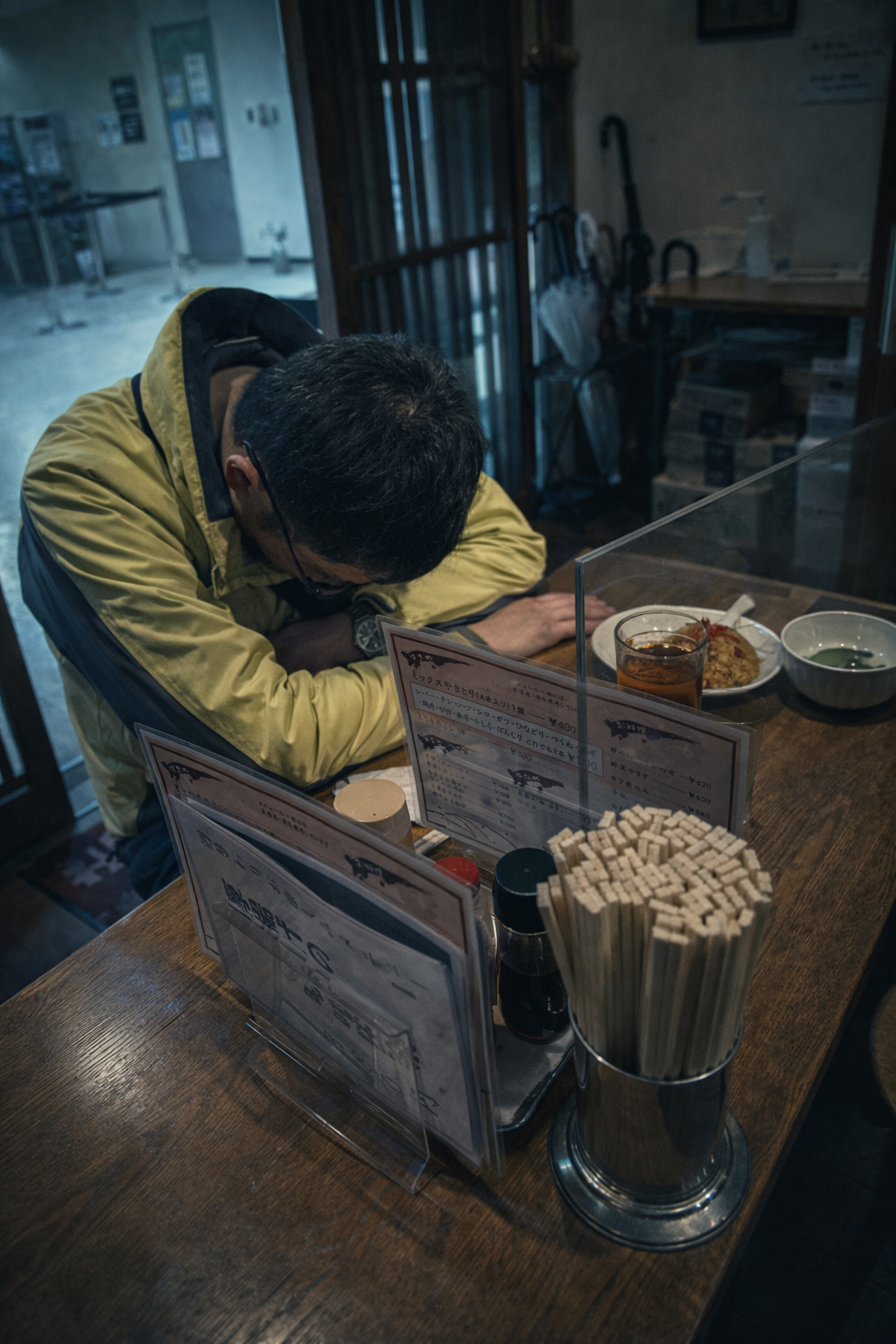 盃を重ねる静かな時間に、不意の異変が忍び込みます。