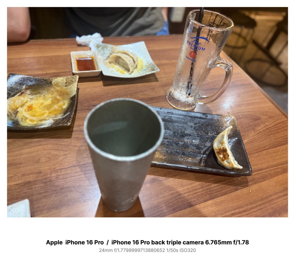 人混みの熱気のまま、喉を冷やしたくて入った小さな居酒屋。店の奥、照明の届かない席に案内され、友人とハイボールを頼んだ。ジョッキはすぐに水滴をまとい、餃子が焼ける音が耳に心地よかった。