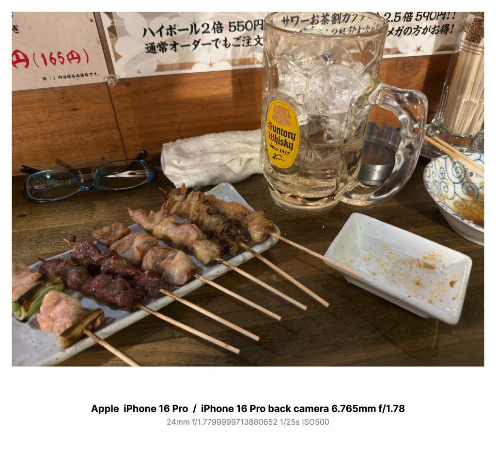 氷が「カラン」と鳴るたび、焼き台から戻った串が皿に一本ずつ増える。皮、ハツ、レバー、シロ、砂肝――客のいないはずの席の前で、焼き鳥は順番を守って並ぶ。空の小皿には、誰かが指で掬ったみたいなタレの跡が、毎回同じ場所に残る。