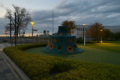 一周していた連鎖音が、輪ゴムがちぎれたみたいに途切れる。コーンの側面が、力なくふわりと揺れ、旗振りの片腕が外側へ捻じれた。もう一枚、ずらす。