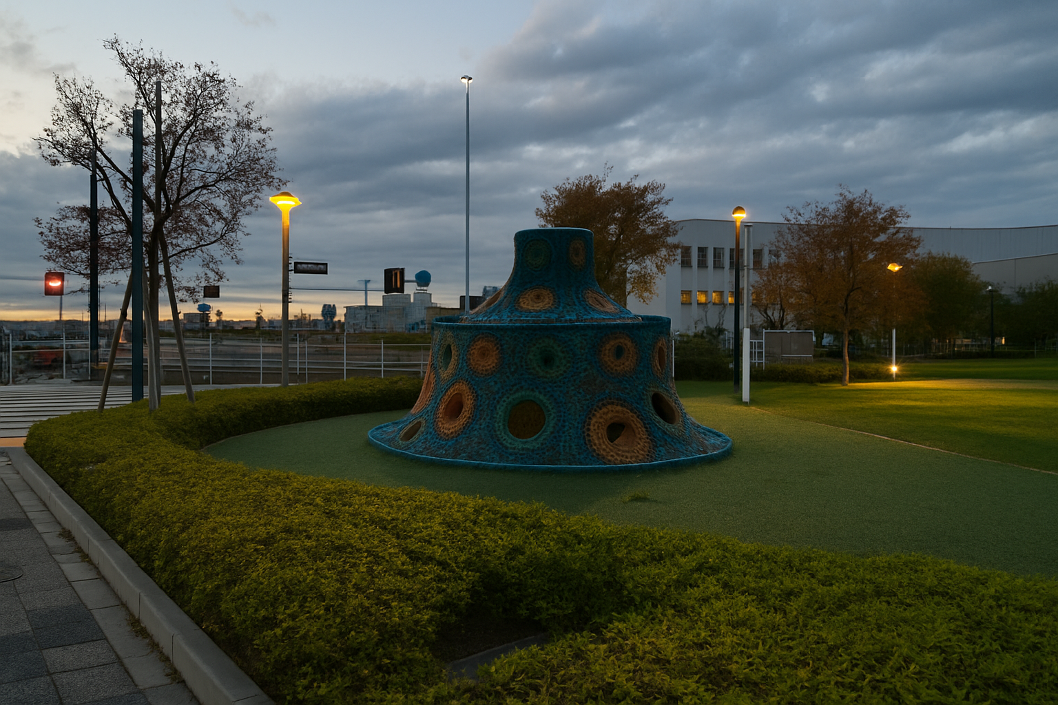 私はしゃがみ込み、もっとも手前のベースの端を指でこじった。固い。指の腹を焼くような冷たさ。爪の先で少しだけ持ち上げ、息を吸う。その瞬間、旗振りが一歩、こちらに寄った。反射帯が視界いっぱいに広がり、空洞の顔の縁に曇天が流れ込む。私は渾身でベースを半枚ずらした。