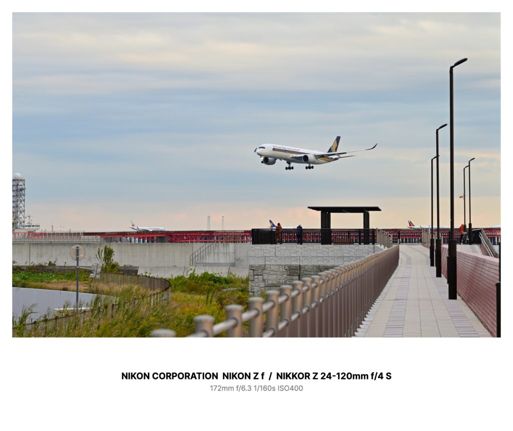見学デッキに立つと、ちょうど頭上を機体が横切る。腹に付いた灯りが二つ、着陸灯。離着陸の合間、デッキの屋根越しに、人の影が並ぶのが見える。