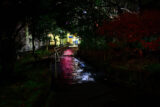街灯の光の中で、アスファルトの色が、そこだけ夜よりも濃く沈んでいる。
