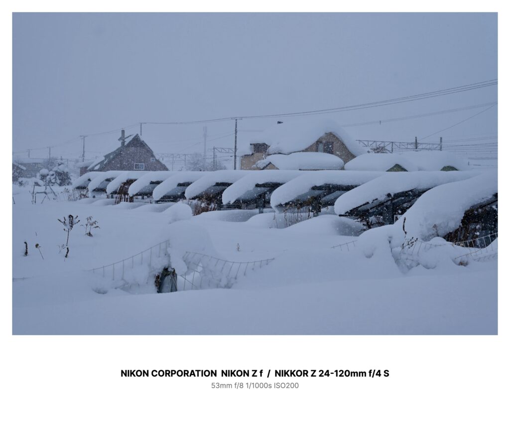 空も大地も、家の形さえも、全部まとめて同じ灰がかった白で塗りつぶされてしまう。