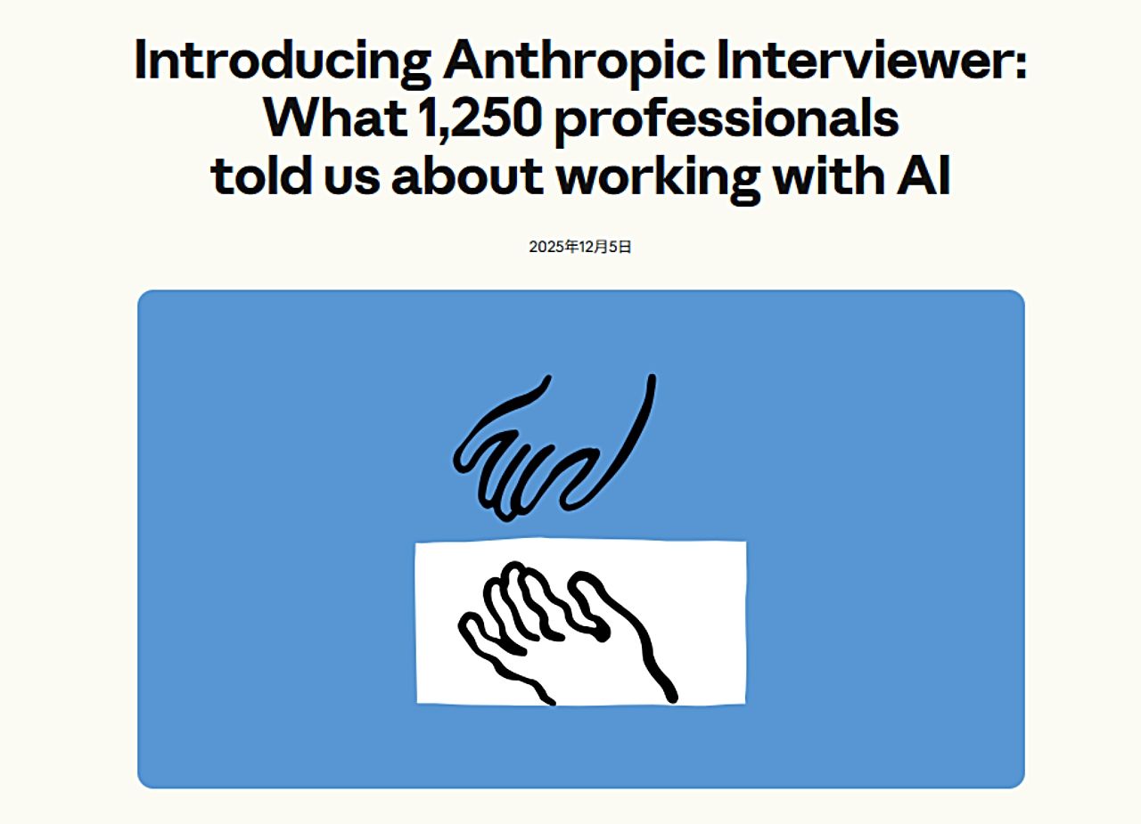 Anthropic、LLMが10~15分の自動インタビューを実施する新ツール「Anthropic Interviewer」を公開──1,250人調査データも公開、Hugging Faceでトレンド1位に | Ledge.aiAI・人工知能関連のニュースやトレンドを高頻度で配信!最新ニュースやインタビュー、イベントレポートなどAIに関するさまざまな情報を独自の切り口で掲載