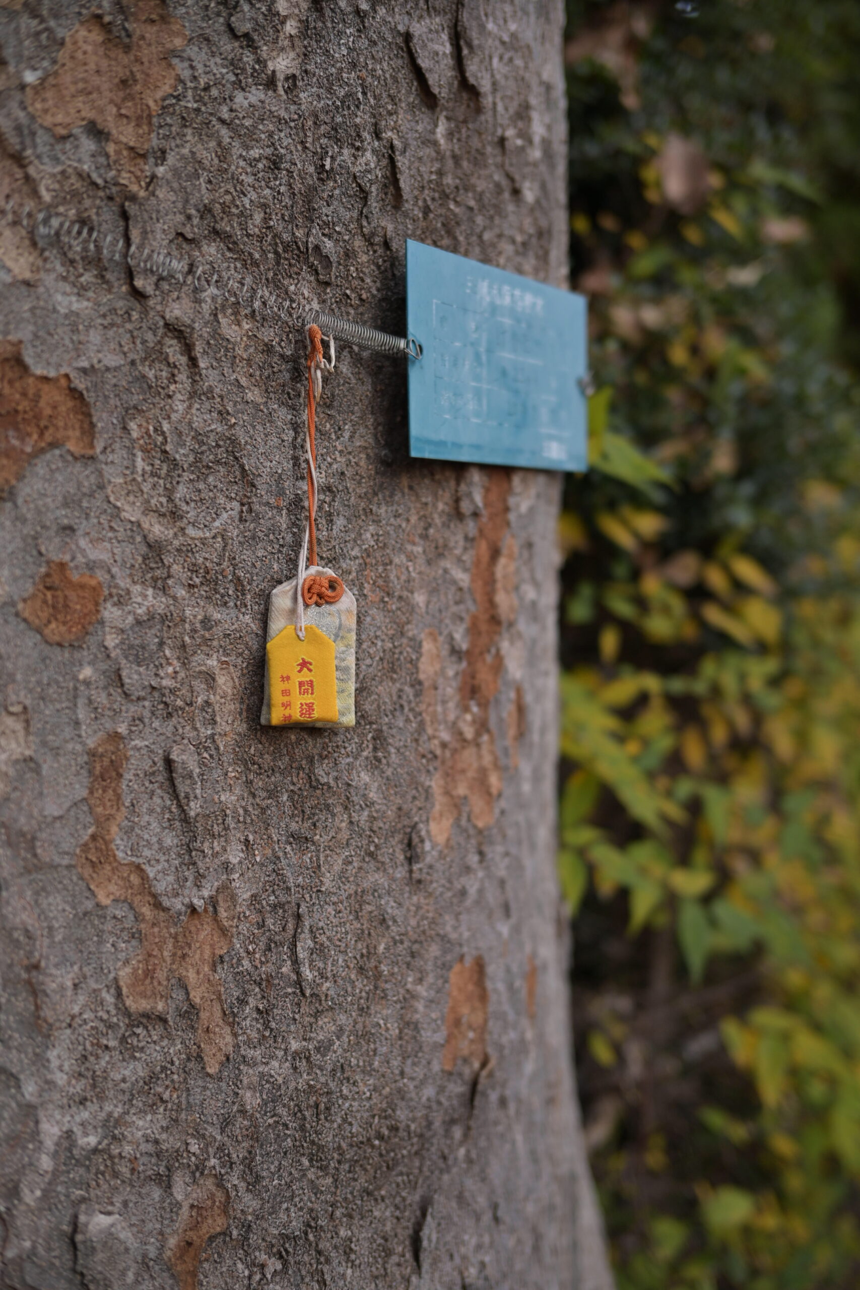 今でも、幹には水色のプレートと、最初のお守りがぶら下がっている。