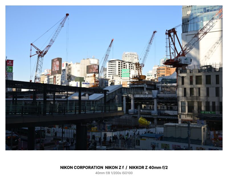 都心の大きな駅は、空を何本もの線で縫っていた。クレーンの腕は、青い空を傷つける骨格みたいに伸び、吊り具の先だけが何も持たずに、ただ揺れている。