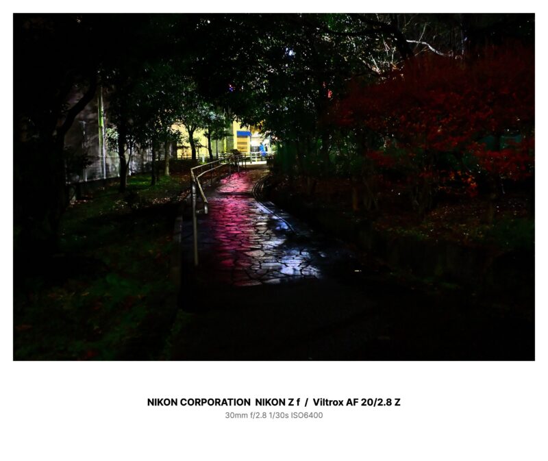 その日、私は夜勤明けで頭が鈍く、噂のことも忘れていた。木々が道を覆い、街灯の白が葉に吸われて暗くなる。右手の植え込みの紅葉だけが、濡れたまま鈍い赤を残していた。足元の石畳は、黒い目地が水を吸って浮き上がり、踏み出すたびに網目が一瞬だけ締まって見える。歩くたび、道が呼吸している。
