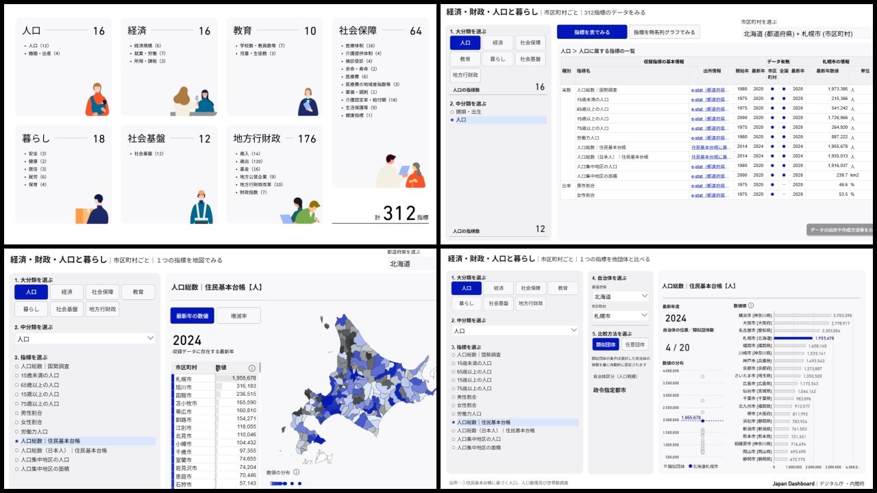 デジタル庁と内閣府、市区町村単位の「Japan Dashboard」を公開──経済・財政・人口・暮らしを横断可視化