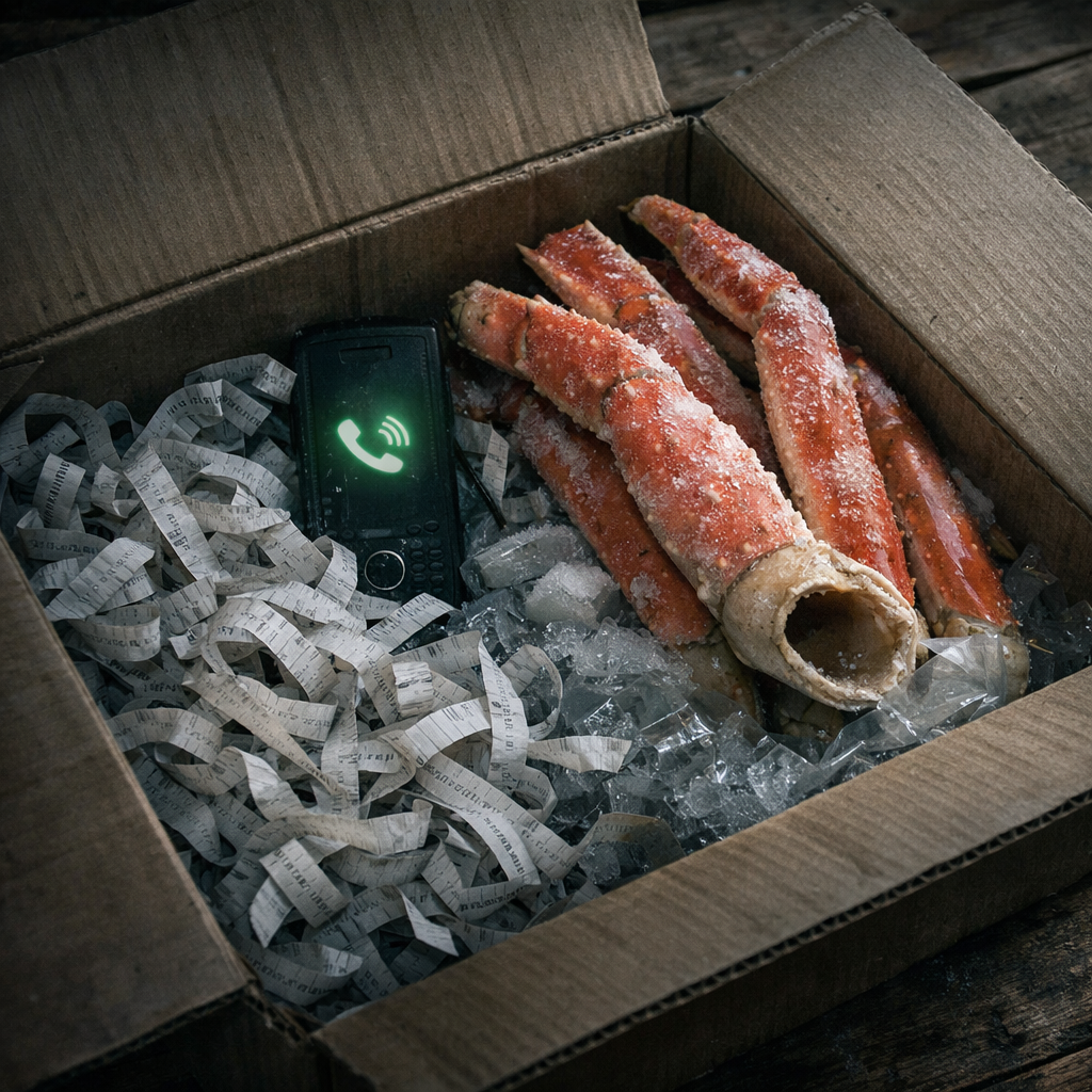 管理人が立ち会って、箱を開けたといいます。中には「お得なカニ」とだけ印字された薄い紙と、冷えきった脚が入っていました。脚は太く、見た目だけは立派でしたが、割った途端にわかったそうです。中身が、スカスカだったのです。身がない、というより、空洞だけが残っていた。