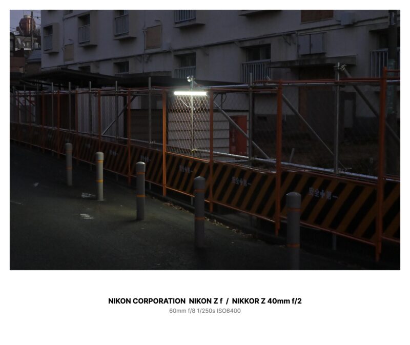 だけど、団地の前を通るときだけ、影の足元が“濡れる”。黒い水たまりみたいに広がり、影の輪郭が金網の方へ伸びる。