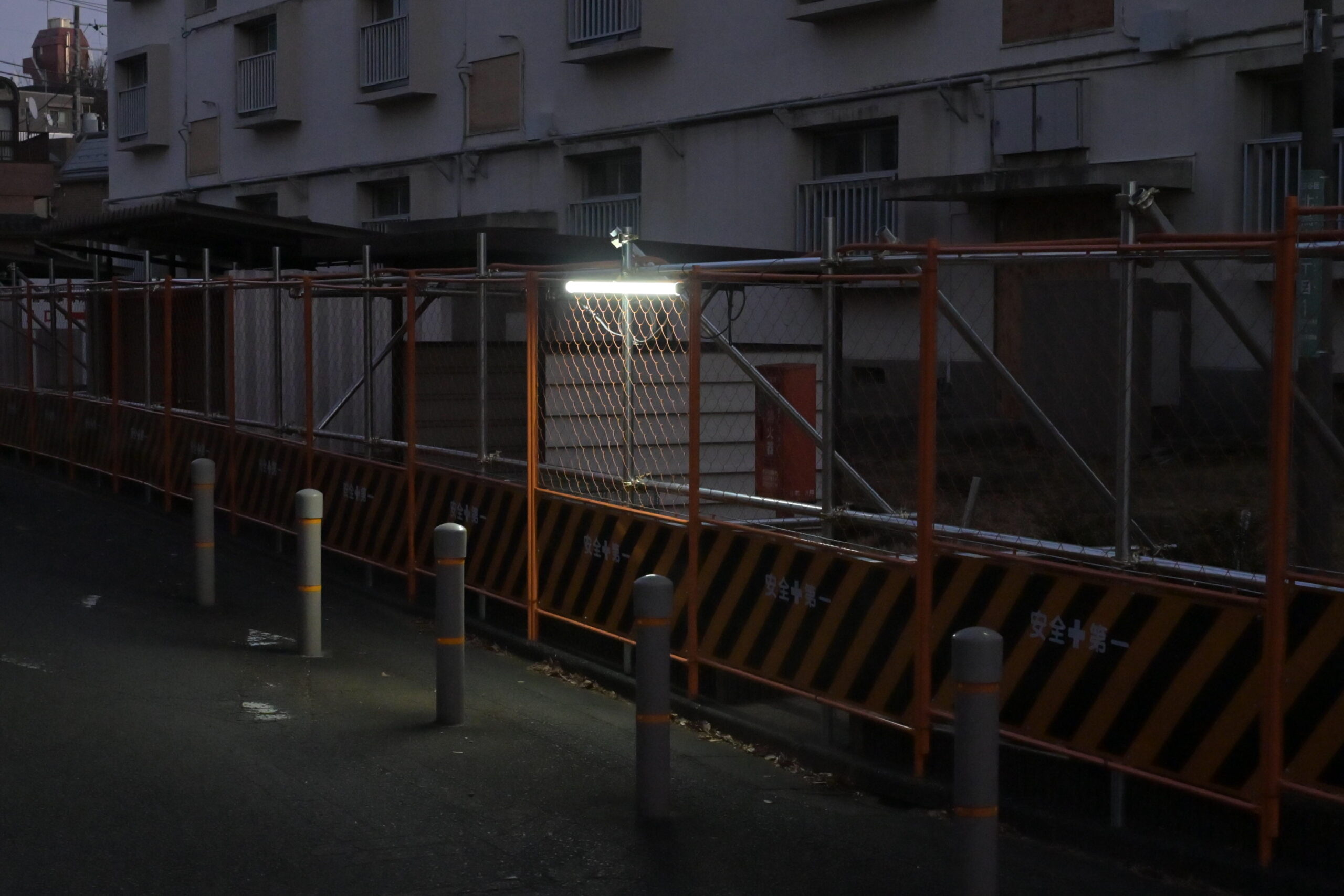 それでも作業灯は点いていた。夕方の晴れ空の下で、そこだけ夜を作って、入口を照らしていた。