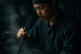 波紋が、男の手の動きに合わせて広がっていた。風はない。枝も動かない。なのに水面だけが、音の代わりに震えている。