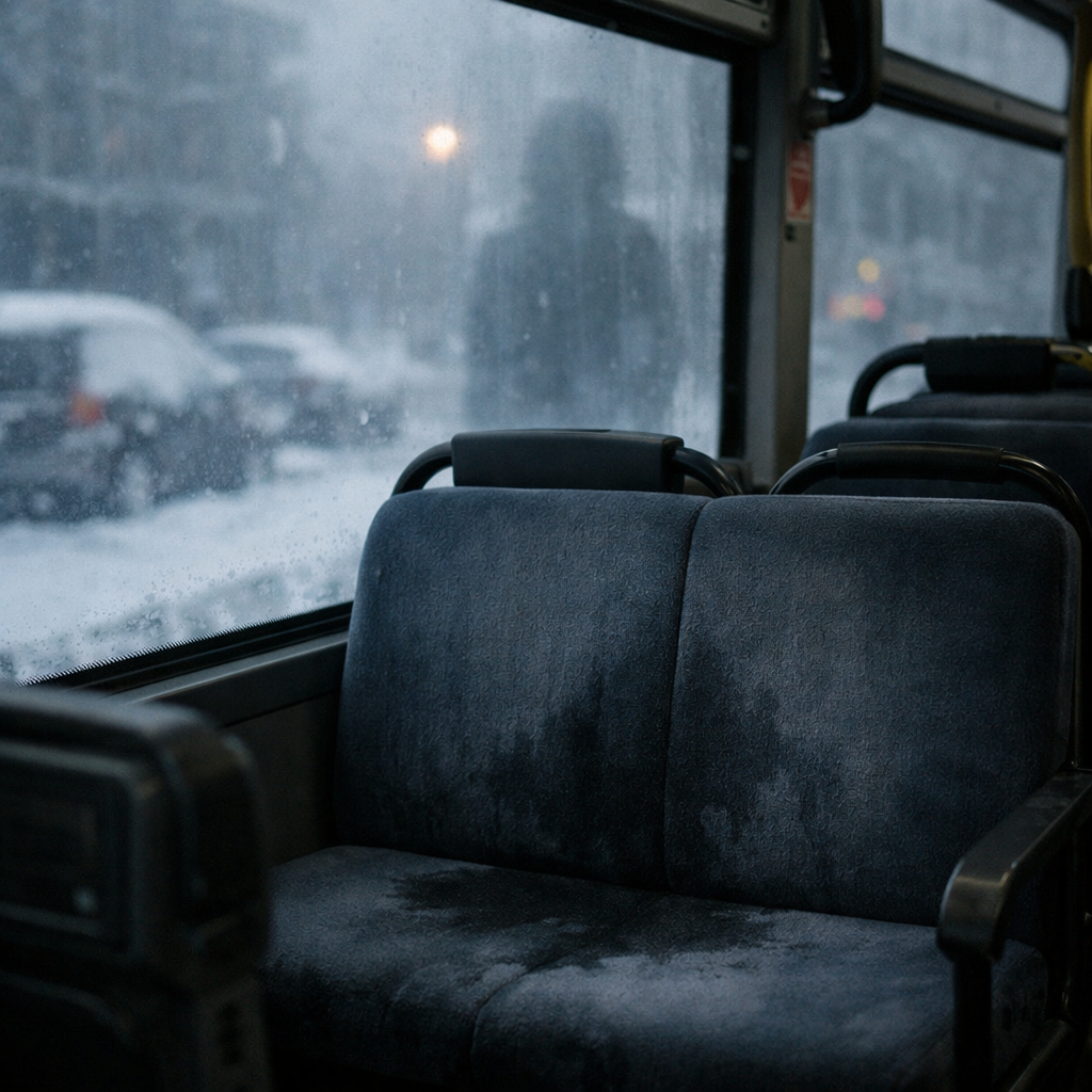 最初に「見えた」と言い出したのは、後ろ寄りの席に座っていた監督役でした。座席の背を越えたあたりに、誰かが立っている。濡れたコートの裾から、溶けかけの雪がぽたぽた落ちていた、と。次の瞬間、その“誰か”が座ったのが見えたそうです。座ったはずなのに、沈む音がしない。足が床に触れた気配もない。なのに、座席の布だけがゆっくり湿っていったといいます。