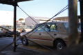 落ちる音がしない。跳ね返る音もない。消えた場所だけが、少し暗い。屋根の下の影が、そこだけ濃い。