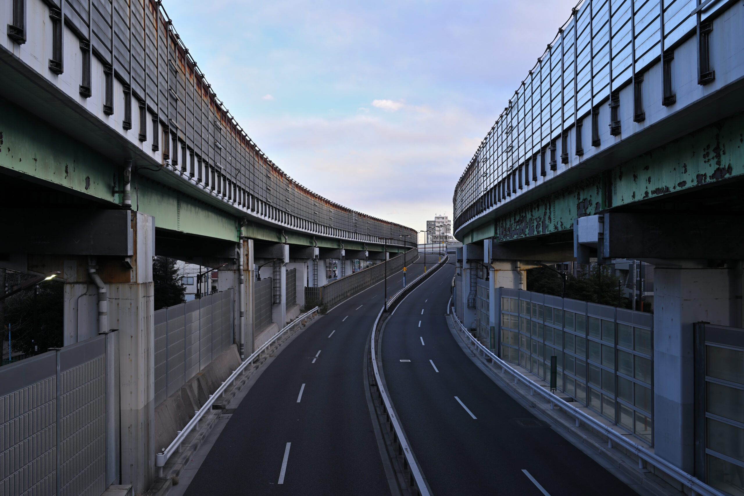 私の担当は湾岸寄りの高架区間だった。二本の高架が大きく弧を描き、その下を一本の車線がゆっくりと曲がっていく――防音壁に挟まれた、細い通路みたいなランプだ。日中は渋滞の逃げ道に使われることもあるが、深夜はほとんど車が来ない。