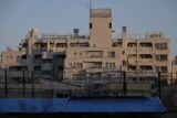 線路に沿って細い道路が伸び、右手には新しい高架化のための鉄骨が、同じ幅と同じ高さで何本も何本も並んでいる。巨大な骨組みが空を切り取って、青空を細く、薄くしていた。昔からそこにあった街灯は、その骨の間に取り残されたまま、緑がかった柱だけが妙に目立つ。まるで後から造られた鉄骨が、街灯を飲み込もうとしているみたいに。