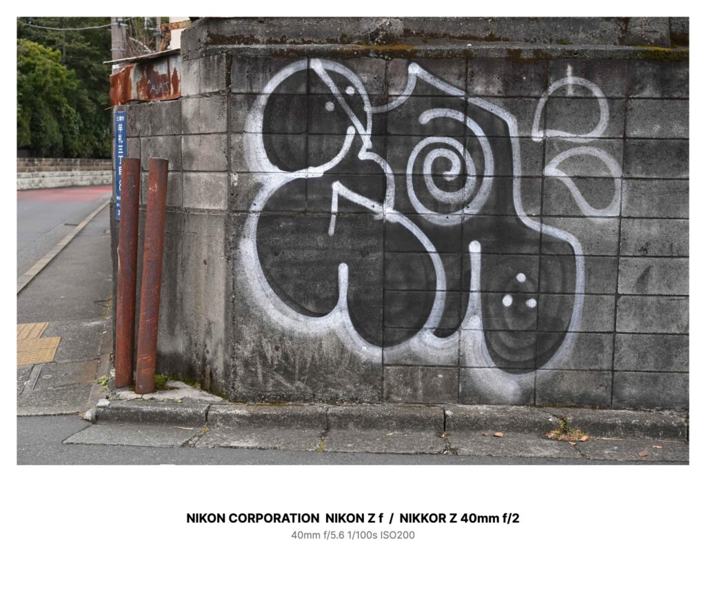 今度の落書きは、白い縁取りが“こちら”に向かって少しだけ開いている。