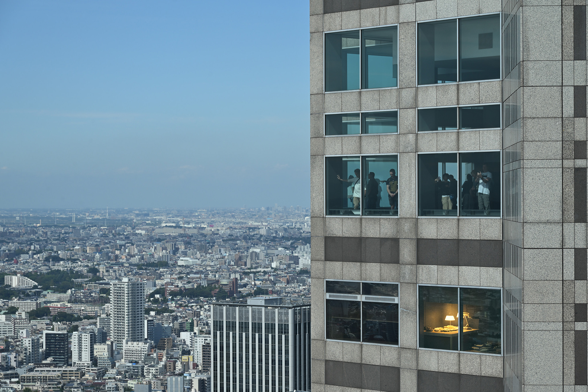 昼の光をそのまま床に落とす、都心の行政庁舎の展望デッキ。ガラスの外は乾いた青で、遠い街の輪郭が薄い霞の中で幾重にも重なって見えた。