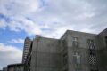 空は明るいのに、壁は光を返さない。窓だけが、空の色を薄く貼りつけたみたいに四角く浮いている。