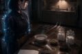 朝・昼・夜の欄しかない簡単な表だったのに、数日後から、毎ページの端に細い字で「九」「七」とだけ書き足されるようになったそうです。自分の癖ではないのに、墨のように濃く、消しゴムでも薄くならない。しかも、その数字が記された晩に限って、汁椀の内側には指でなぞったような白い輪が二つ残りました。片方は喉に触れる上の縁に、もう片方は椀の底近くに……。