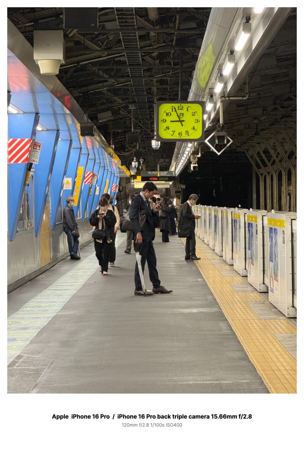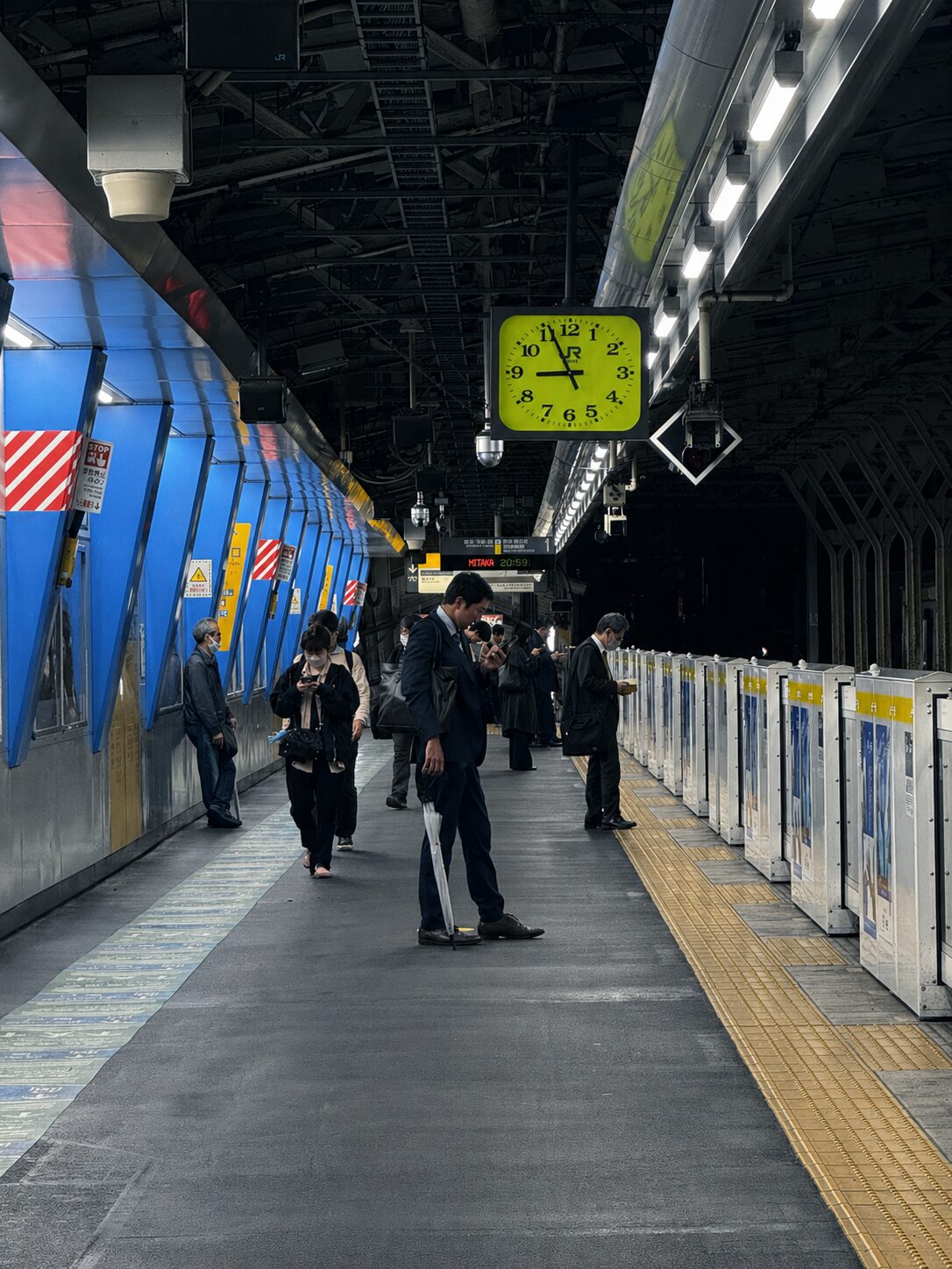 高架の下へ吸い込まれるように暗い線路、白いホームドア、蛍光灯に照らされた天井の配管。案内表示には、三分後の三鷹行きが出ている。人々はみなスマートフォンを見て、誰も時計を見ない。見ないようにしている、と言ったほうが近い。