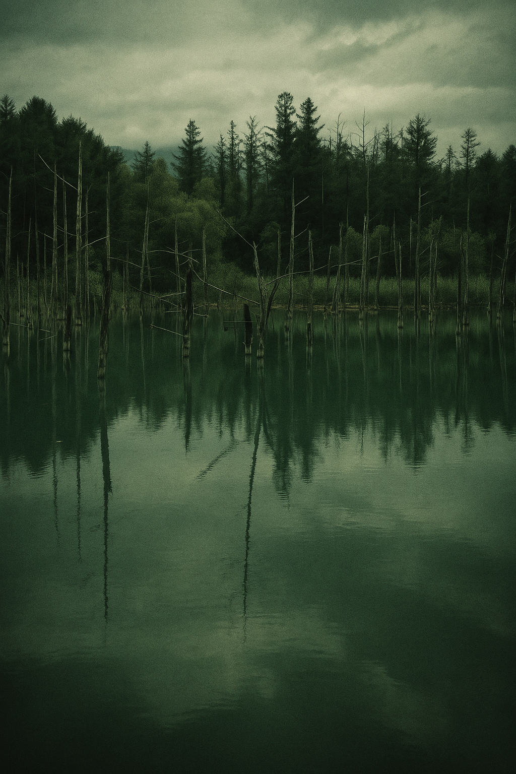 やがて、足元がじわじわと冷たく濡れていくのを感じた。見下ろすと水たまりが広がり、そこに映るのは自分の顔ではなかった。知らぬ人々の顔が幾重にも重なり、苦しげに口を開けている。
