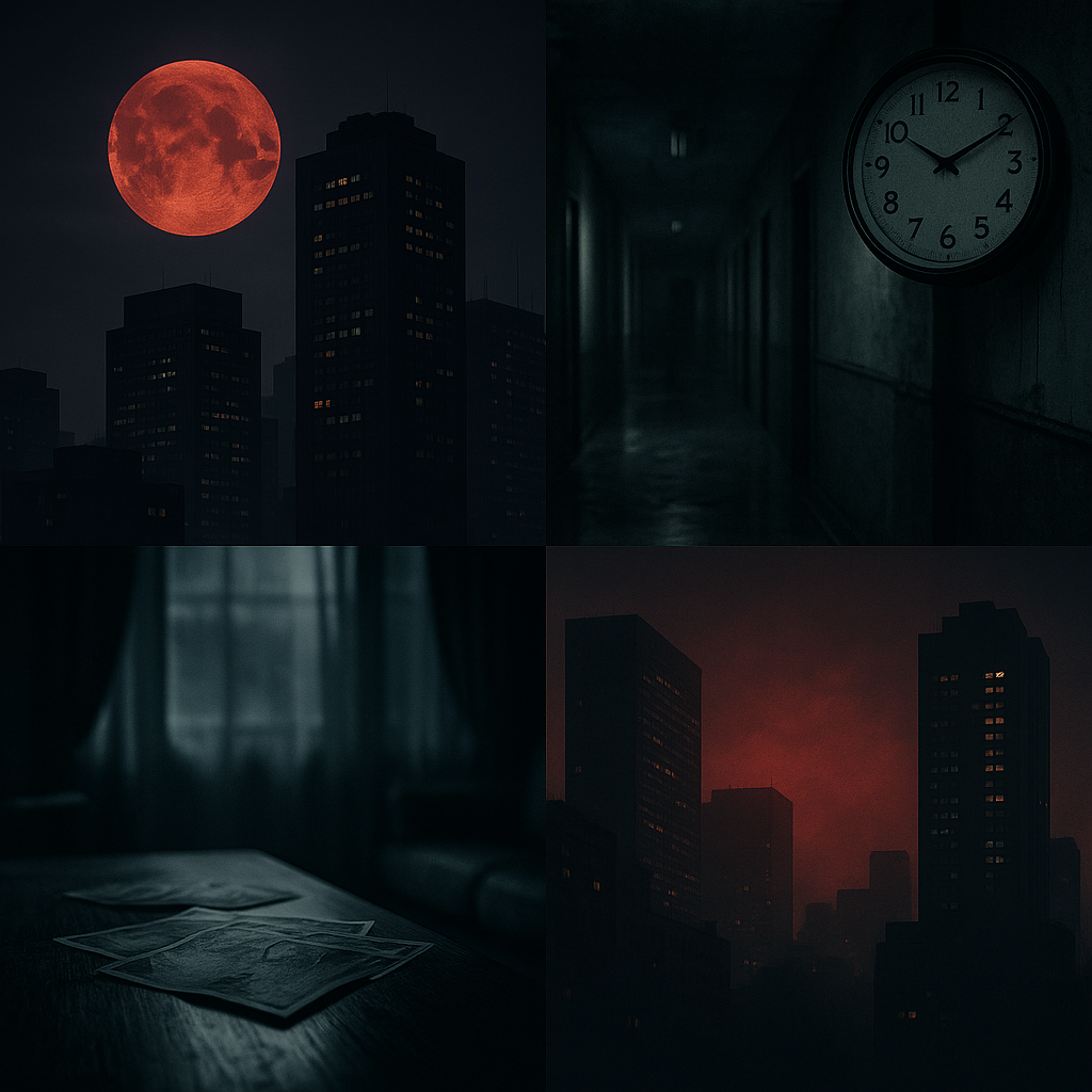 その夜、ふと見上げた月は血のように赤く、電線に縫い止められているように見えた。