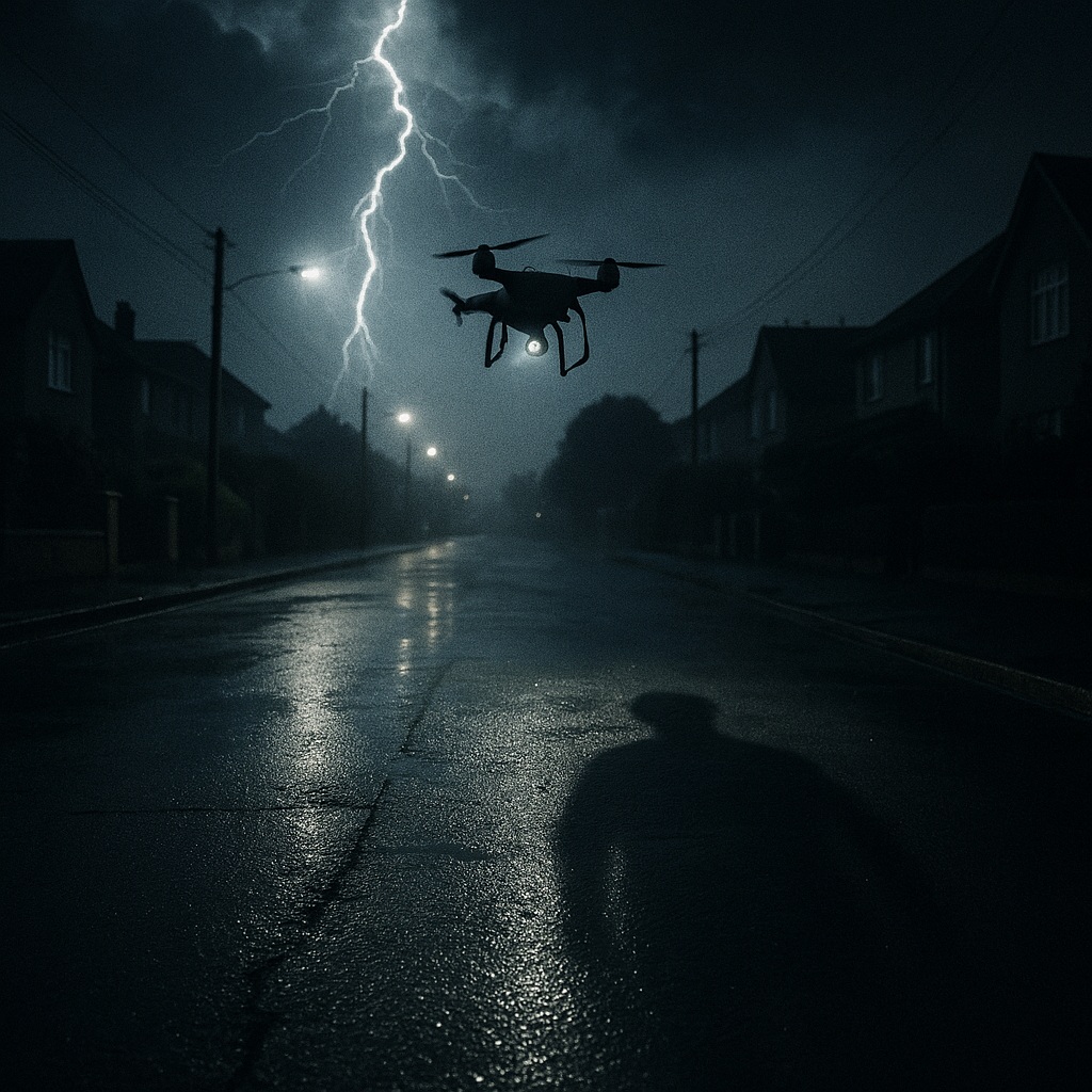 そのドローンが最後に目撃されたのは、稲妻が地上に落ちる直前のこと。