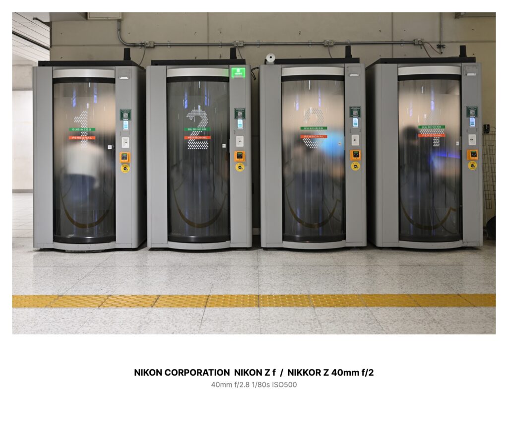 駅の地下通路に、灰色のカプセルが並んでいた。