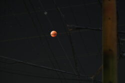 その夜、ふと見上げた月は血のように赤く、電線に縫い止められているように見えた。不思議と視線を逸らせず、じっと見続けているうちに気づいた。電線が震えている。風のせいだと思ったが、夜気は凪いでいた。よく見ると、一本の線の結び目に、白く細い指が絡まっている。指はぎこちなく動き、月を線に引き寄せるように引っ張っていた。それは人間の腕の長さでは届かない高さだった。だが確かに、そこに指がある。やがて月が少しずつ歪み、赤い光が電線の網に滲み落ちてきた。垂れた光は道路にまで届き、アスファルトに黒い染みを広げていく。翌朝、その場所に行ってみると、電柱の根元の地面が濡れていた。夜露にしては赤黒く、乾いた跡は指のような痕を描いていた。この怪談は、実際の写真から着想を得て構成されたフィクションです。2025年9月、日本全国で皆既月食「赤い月」を観察しよう